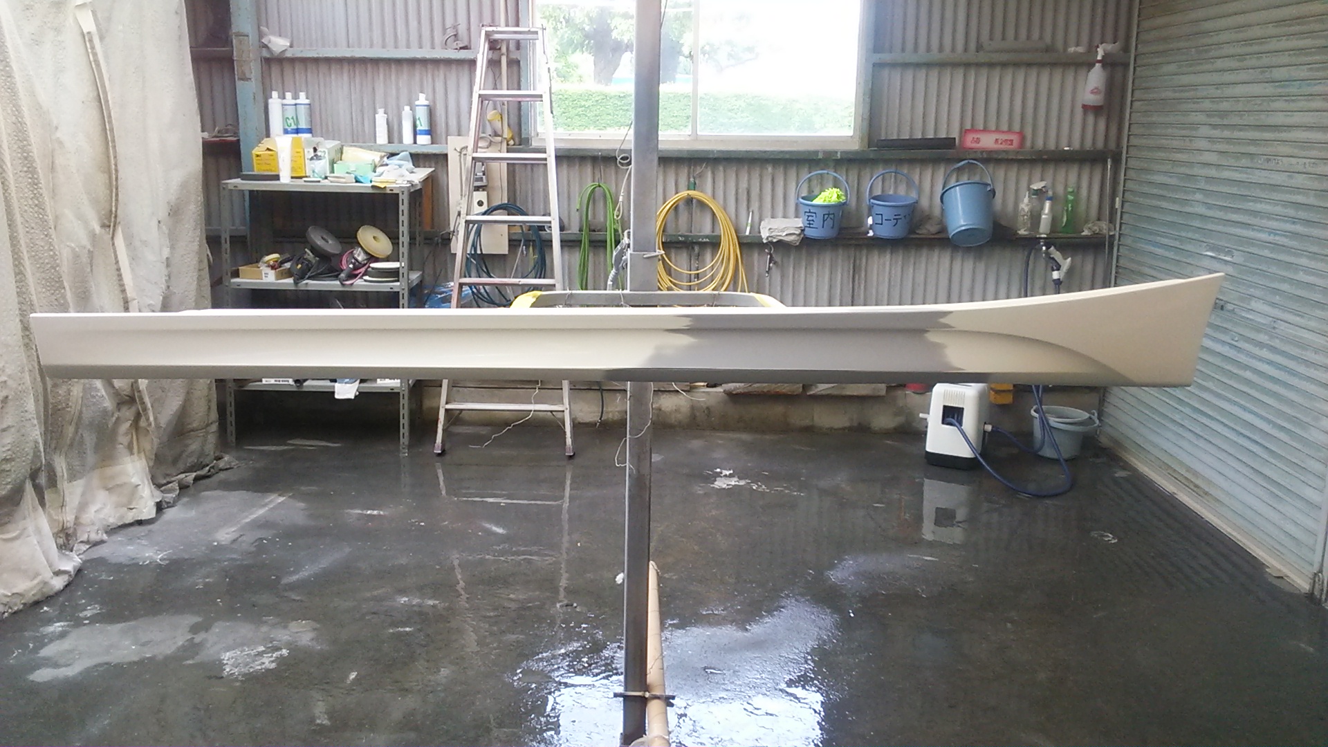 次にサフェサー(中塗り)を吹き付け鈑金作業終了です。
